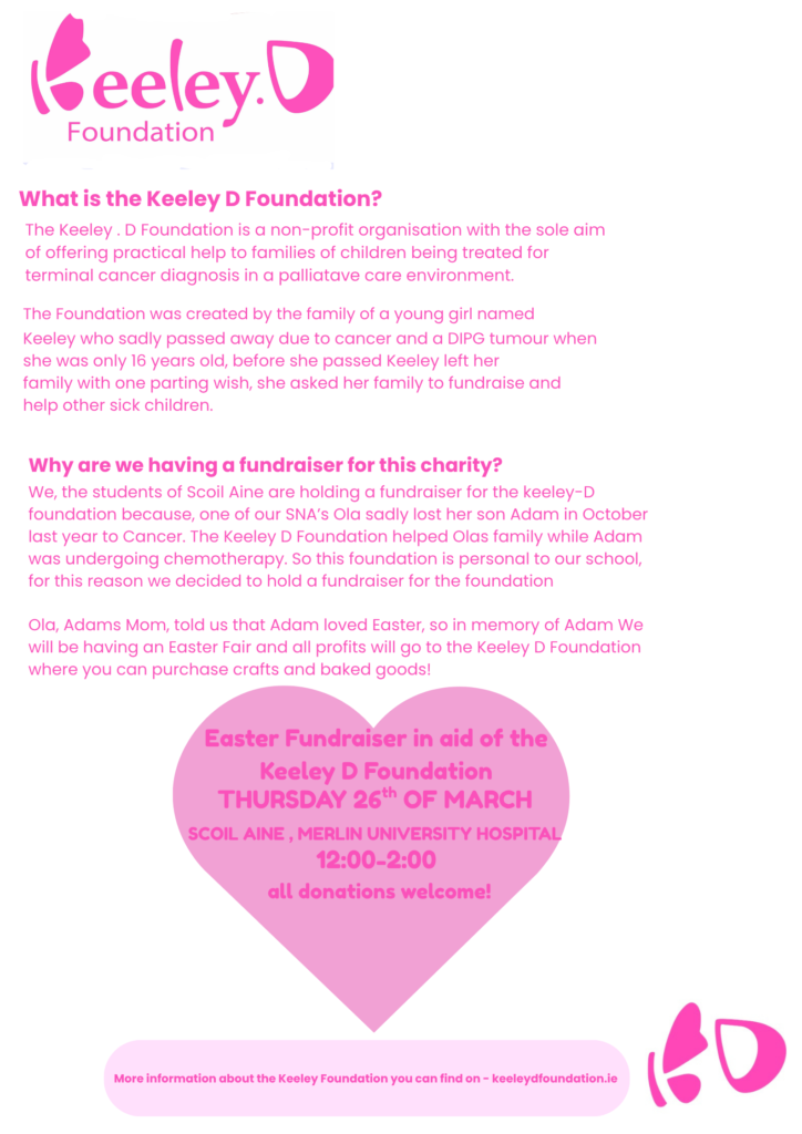 We are having a charity fair for the Keeley D Foundation. They support people with end of life care and was really kind to our SNA Ola with helping her and her family while her son was sick.